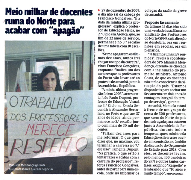 Recorde-se que, até ao momento, o descongelamento da carreira docente não foi negociado, pois, em 12 de outubro, o Ministério das Finanças remeteu o processo para o da Educação, mas no dia 16 este fez saber que essa negociação não era da sua competência. Contactado o gabinete do Primeiro-Ministro, este, em 2 de novembro, remeteu para o Gabinete do Ministro da Educação.