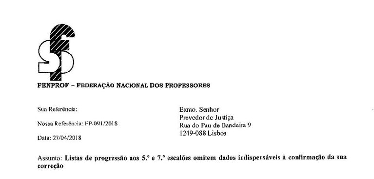 Face à ausência de qualquer resposta a esta reiteração por parte dos responsáveis do Ministério da Educação, a Fenprof dirigiu-se ao Provedor de Justiça expondo o problema e solicitando um pronunciamento sobre o mesmo.