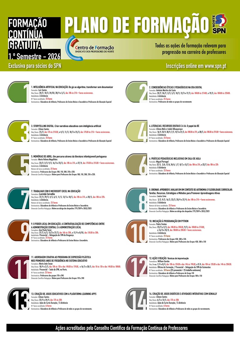 2026 — CF/SPN: Ações de formação (1.º semestre)