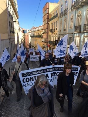 Der acordo com o programado, Fenprof, ABIC, Rede de Investigadores contra a Precariedade e Federação Nacional de Trabalhadores em Funções Públicas e Sociais, promoveram, esta terça-feira, um protesto nacional de investigadores, docentes e não-docentes, no Largo Camões, em Lisboa, e que contou com a participação deprofessores e investgadores do Norte.