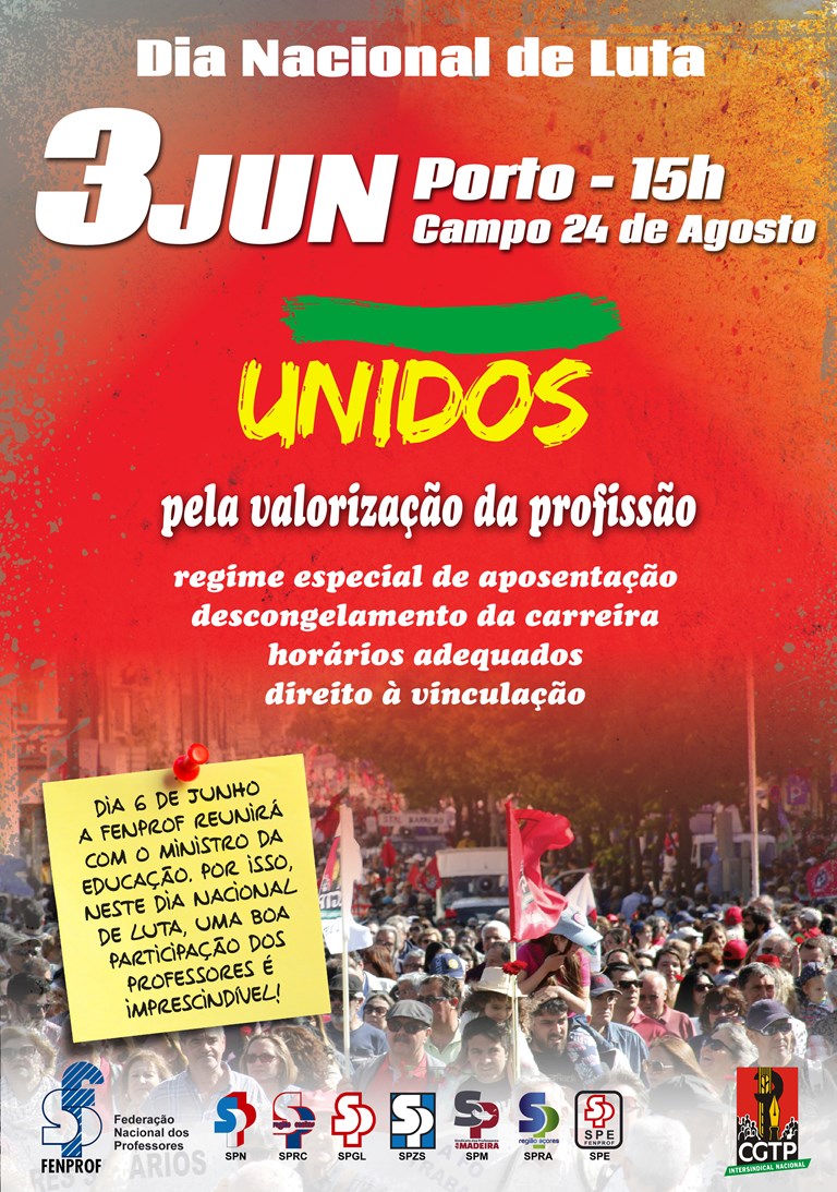 (Pré-concentração dos professores a partir das 14h30, em frente ao edifício da Junta de Freguesia do Bonfim)