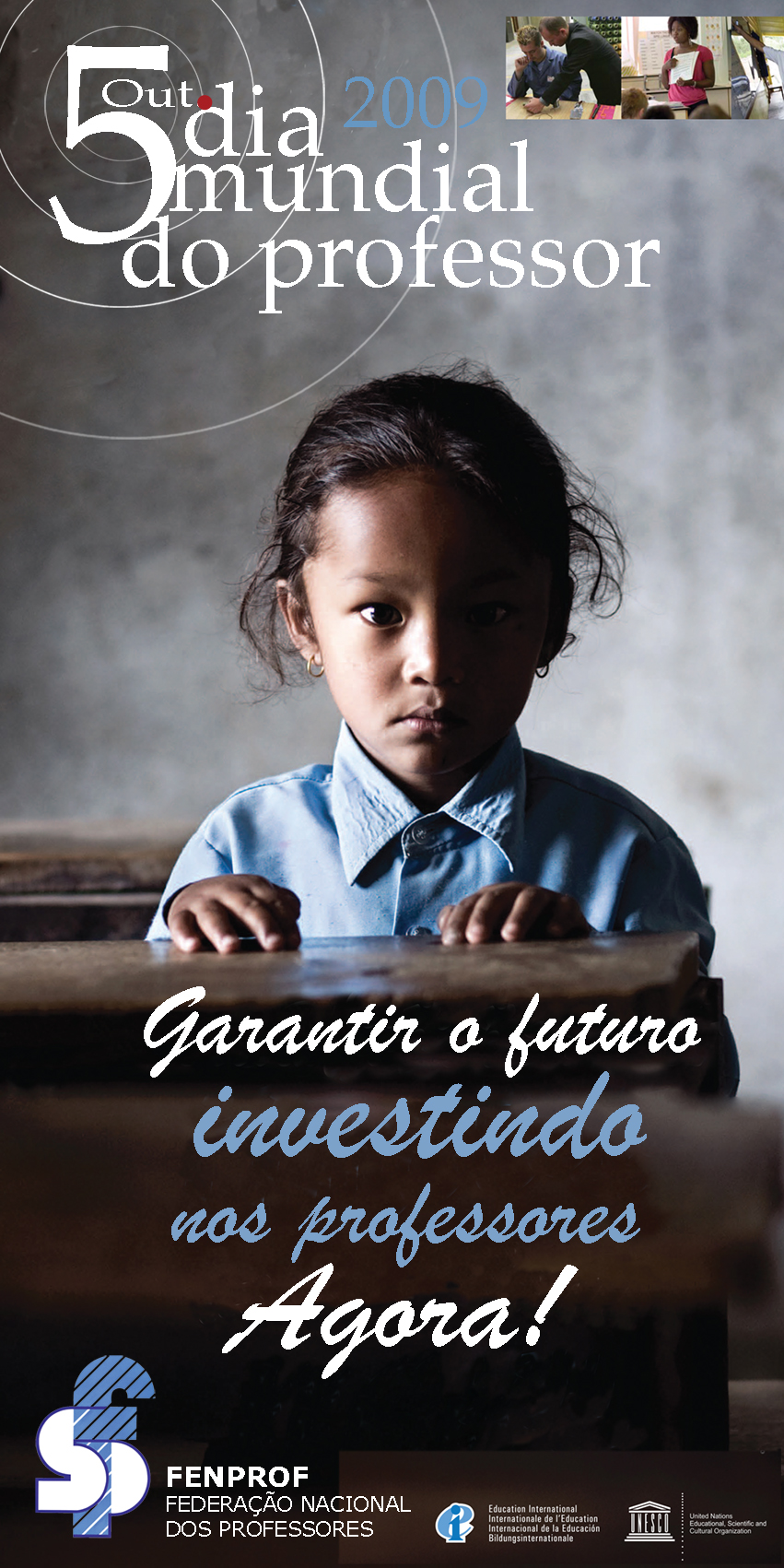 Dia Mundial do Professor Sessão pública em Lisboa No próximo dia 5 de Outubro (segunda-feira), Dia Mundial do Professor, em sessão pública a realizar a partir das 15.30 horas, na Escola Secundária de Camões (Praça José Fontana, em Lisboa), a FENPROF, pela voz do seu Secretário-Geral, Mário Nogueira, tornará públicas a apreciação política que faz do novo quadro parlamentar saído das eleições de 27 de Setembro e as decisões tomadas pelo Secretariado Nacional da FENPROF, reunido nos dias 1 e 2 de Outubro. Na sessão pública de 5 de Outubro, participará o Professor Doutor António Nóvoa, Reitor da Universidade de Lisboa, personalidade que a FENPROF convidou para intervir tendo em consideração a elevadíssima qualidade do trabalho académico que vem desenvolvendo em torno da profissão de professor e da sua profissionalidade. No mesmo local,decorrerá ainda a apresentação pública da exposição subordinada ao tema "Dignificar a profissão, valorizar a escola pública: a luta dos professores portugueses".