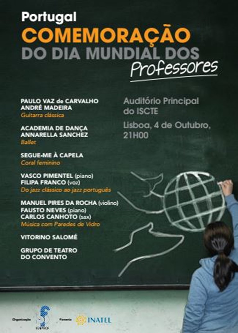 Numa organização FENPROF/Fundação INATEL, realiza-se em Lisboa, no próximo dia 4 de outubro, pelas 21h00, um espetáculo, no auditório principal do ISCTE. Para assistir é necessário levantar bilhetes nas sedes dos Sindicatos da FENPROF.