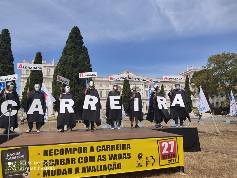 Hoje, a carreira docente é pervertida e desvalorizada pela não contagem de 6 anos, 6 meses e 23 dias de serviço cumprido; pelo atraso na progressão aos 5.º e 7.º escalões de milhares de docentes que, por força de vagas decididas administrativamente (vagas essas que, este ano, já deveriam ter sido publicadas em janeiro); e, ainda, por ultrapassagens que resultam de regimes de transição entre estruturas de carreira, penalizando os educadores e professores com mais tempo de serviço na profissão. Isto para além do regime de avaliação de desempenho em vigor que, entre outros aspetos, devido à existência de quotas, gera tremendas injustiças entre os docentes.