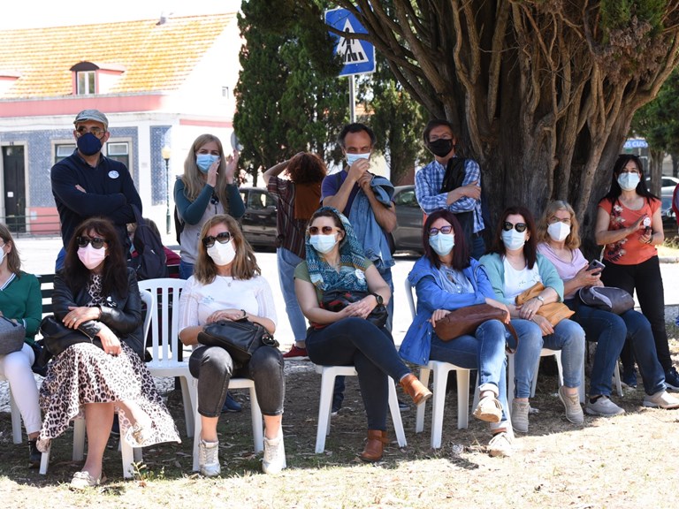 Foi desta forma, após a primeira atuação do grupo musical “Arriba o Monte”, que o speaker deu início a mais uma ação integrada no “Maio, Mês de Luta: Agir para Mudar” que, ao longo das quatro quintas feiras deste mês, aconteceram frente ao local onde se realizou o respetivo Conselho de Ministros (desta vez, foi no Palácio Nacional da Ajuda).