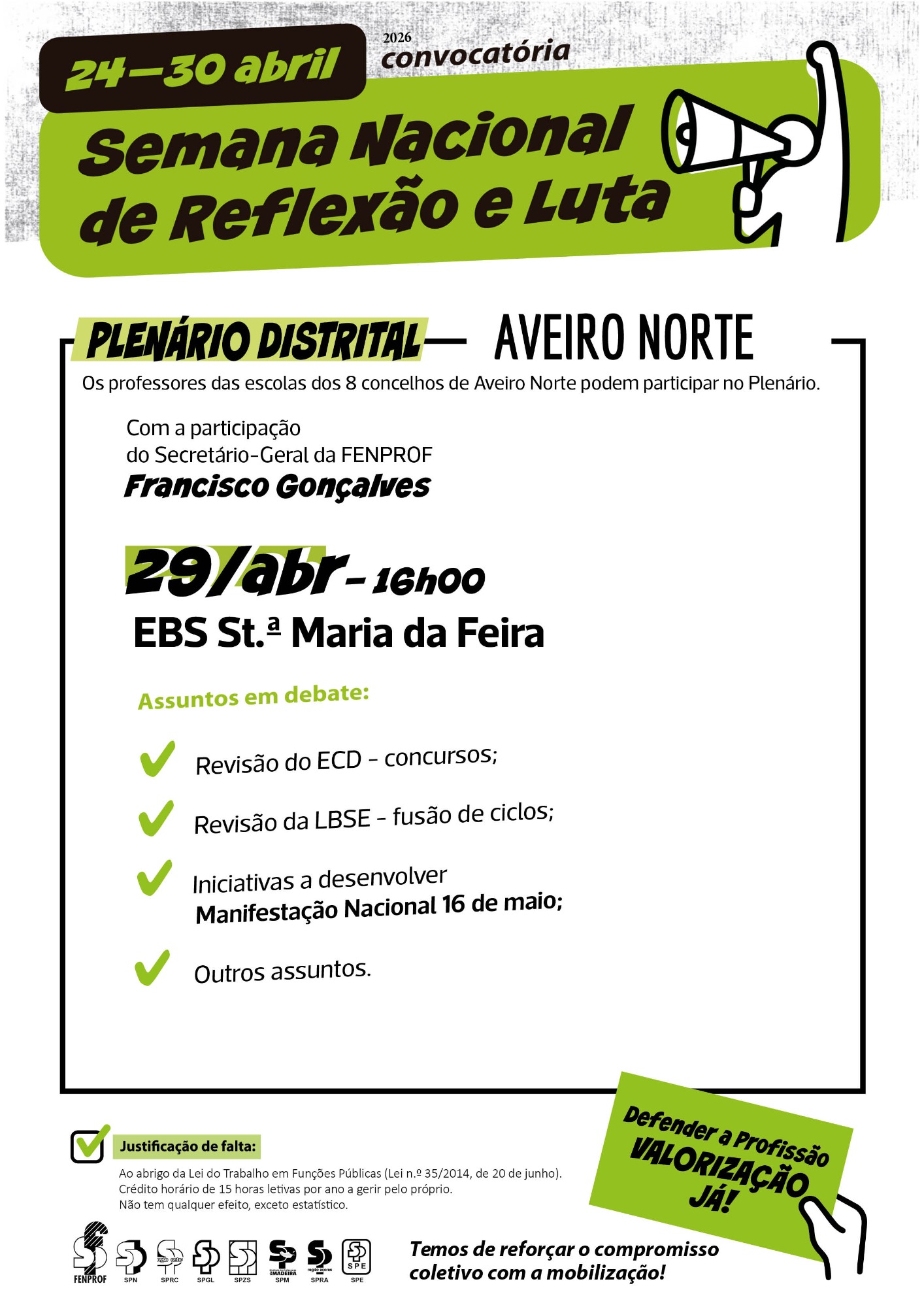 Aveiro/Norte — Plenário distrital (SM Feira, 29/abr)
