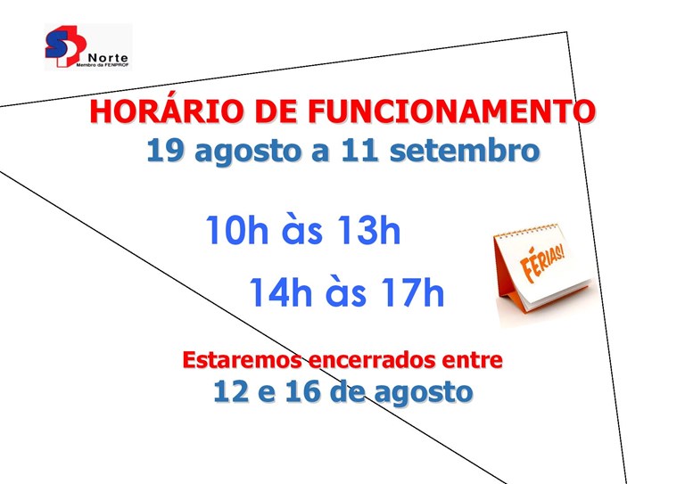 Horário de funcionamento de 12 de agosto a 11 de setembro