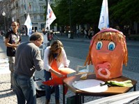 Na ação realizada na baixa portuense colaboraram o Grupo de Animação Sócio-Cultural da Escola Secundária de Gondomar, o Grupo de Teatro Pé ante Pé, da Escola Sercundária da Maia e a Oficina de Robótica da Escola Secundsria de Canidelo. Destaque ainda para as exposições com trabalhos de Jardins de Infância e EBIs do distrito do Porto e para a atuação do grupo "Gaitifarra". Foram distribuídos documentos e os postais da campanha para subscrição.