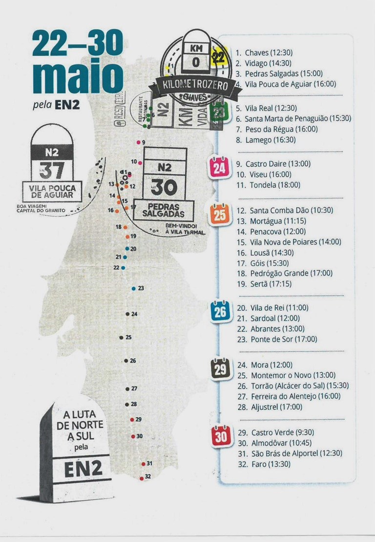 - 12:30 – Chaves[*], marco do quilómetro zero da EN2;