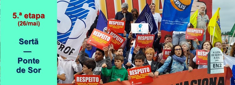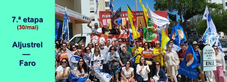 | Conferência de ImprensaCaravana "Pela profissão docente e pela escola pública" (22 a 30/mai) 17 de maio | 12.30 horasMarco da EN2 de Chaves | Marco da EN2 de Faro |