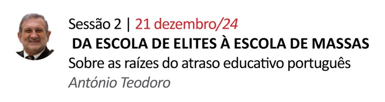 2. Sessão 2 | 21/dez – "Da escola de elites à escola de massas. Sobre as raízes do atraso educativo português" – António Teodoro