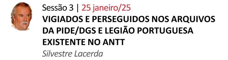 3. Sessão 3 | 25/jan – "Vigiados e perseguidos nos arquivos da PIDE/DGS e Legião Portuguesa existente no ANTT" – Silvestre Lacerda