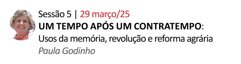 5. Sessão 5 | 29/mar – "Um tempo após um contratempo: usos da memória, revolução e reforma agrária" – Paula Godinho