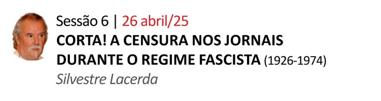 6. Sessão 6 | 26/abr – "Corta! A censura nos jornais durante o regime fascista (1926-1974)" – Silvestre Lacerda