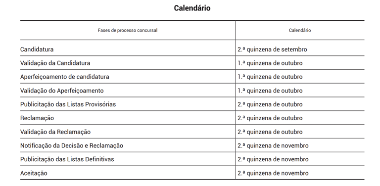 Concurso extraordinário — Mobilidade Interna: Validação da candidatura (até 26/nov)