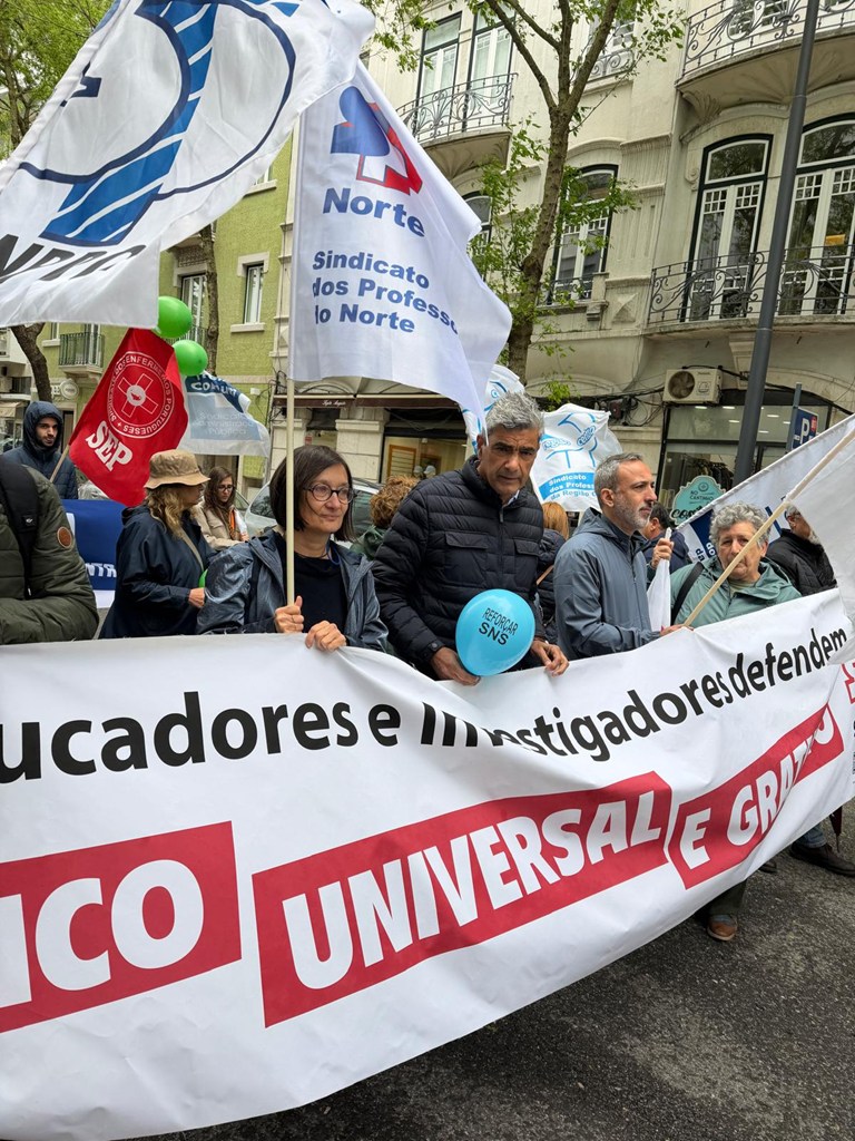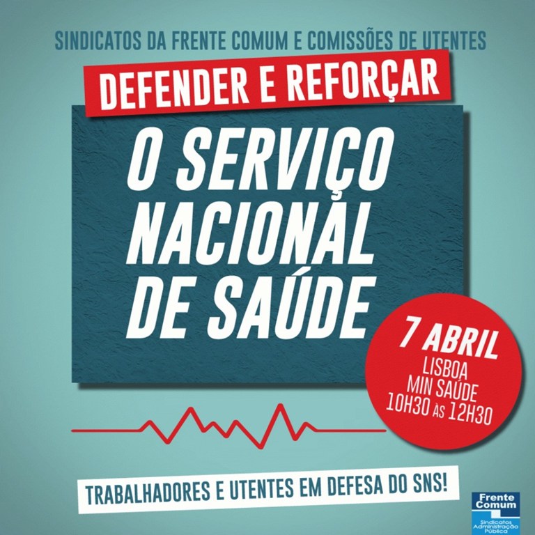 A Fenprof marcou presença na concentração do Dia Mundial da Saúde, sob o mote “Defender e Reforçar o SNS”, que se realizou em frente ao Ministério da Saúde, em Lisboa (7/abr). Promovida pela Frente Comum de Sindicatos da Administração Pública, os presentes lembraram a Constituição da República Portuguesa, que preconiza que “todos têm direito à proteção da saúde e o dever de a defender e promover” (artigo 64.º). Ficou a promessa de continuar a luta por esta conquista de Abril.
