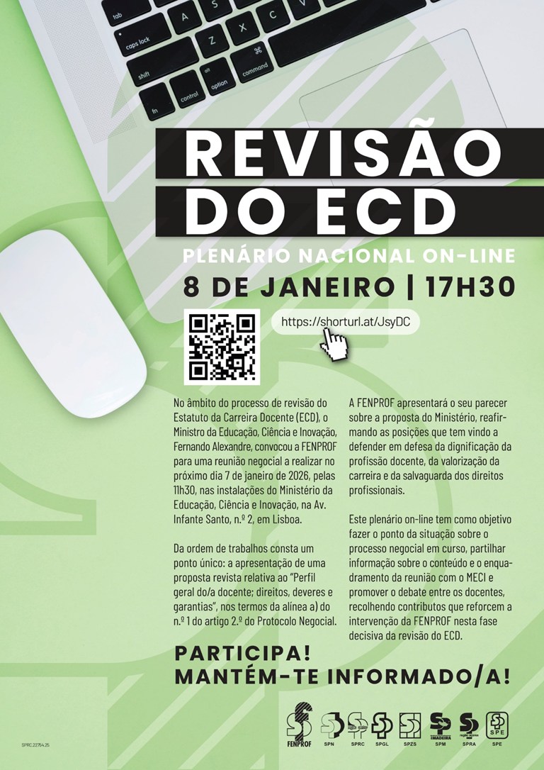 A Fenprof realizou um plenário online (22/dez) para dar a conhecer a sua primeira avaliação das propostas apresentadas na reunião havida com o Ministério da Educação, Ciência e Inovação (18/dez), no âmbito do processo de revisão do Estatuto da Carreira Docente, onde foi apresentada a proposta “Perfil geral do docente; direitos, deveres e garantias”. A Federação irá, agora, enviar ao MECI uma apreciação mais detalhada e consistente até 31 de dezembro.