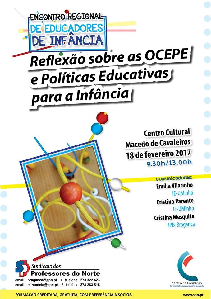 O Sindicato dos Professores do Norte levou a cabo, no passado sábado, um encontro regional de Educadores de Infância. Em Macedo de Cavaleiros a discussão fez-se em torno do papel que o setor deverá ter na formação integral das nossas crianças. Que funções e que papel para o Educador de infância, os apoios a considerar para o seu desenvolvimento profissional e, claro, todas as dimensões organizativas, do Estado Central até ao municipal, passando pelo papel, relevante, das IPSS.