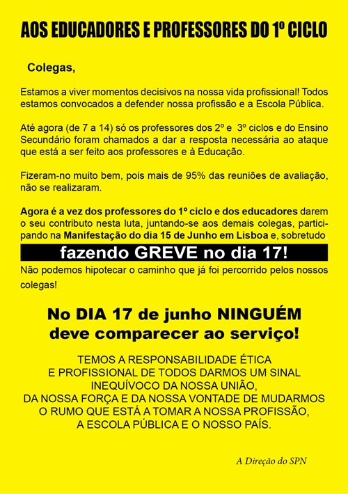 Educadores e Professores do 1ºciclo - a GREVE do dia 17