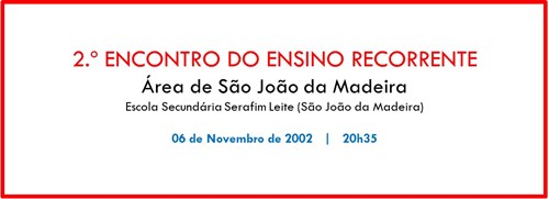 2.º ENCONTRO DO ENSINO RECORRENTEÁrea de S. João da Madeira 06 de Novembro de 2002, 20: 35