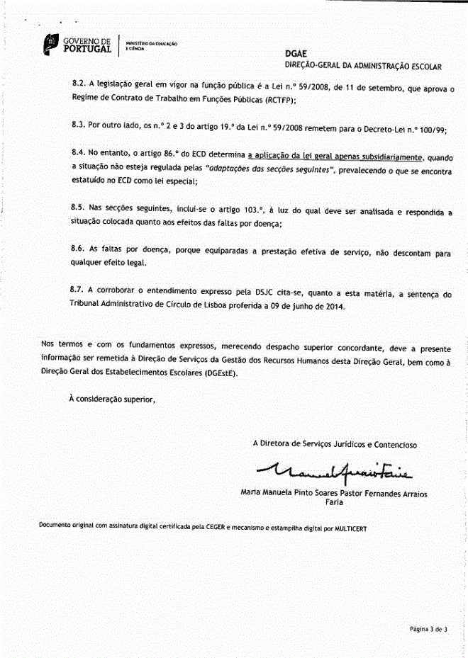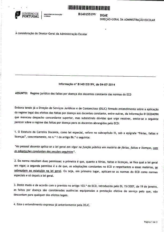 DGAE esclarece, finalmente, a aplicação do artigo 103.º do ECD, através da Informação B14015519V