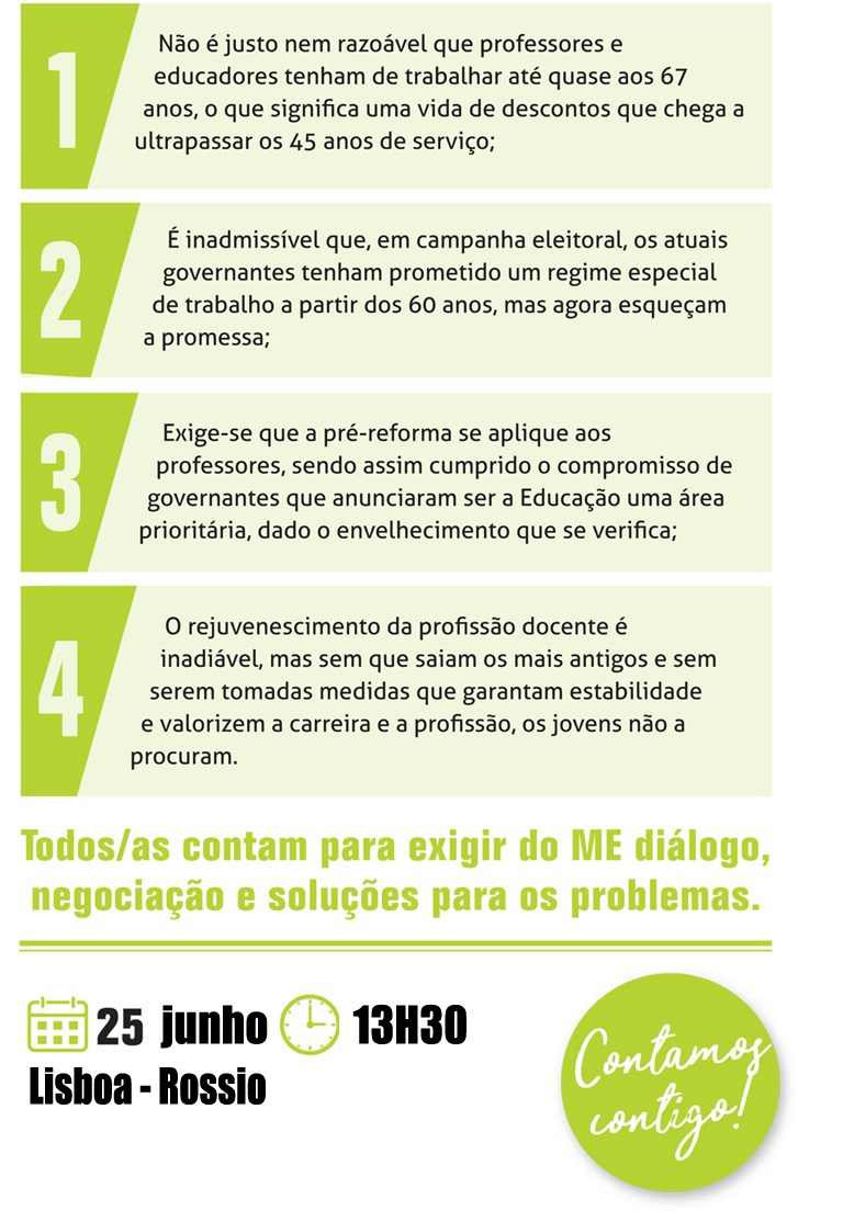 - Por uma aposentação digna e justa e pelo rejuvenescimento da profissão!
