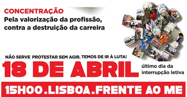 Foi tendo em conta esta avaliação que a FENPROF decidiu convocar os professores para a realização de um conjunto de ações que passam desde logo por uma grande concentração em 18 de abril, mas que, também, pode passar pela realização de manifestação e greve, como destacou Mário Nogueira no encontro com a comunicação social, na qual também estiveram presentes José Alberto Marques (SPGL), Anabela Sotaia (SPRC) e Manuel Nobre (SPZS), membro do CN e do SN da FENPROF.