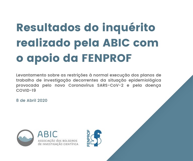 A Fenprof apela ao preenchimento e à divulgação do inquérito lançado pela Associação dos Bolseiros de Investigação Científica (ABIC) com o objetivo de levar a cabo um levantamento sobre o impacto que o COVID-19 está a ter no cumprimento dos planos de trabalho de investigadores , bolseiros e contratados.