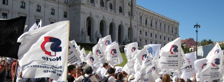 "as bandeiras do Sindicato dos Professores do Norte estavam em maioria no Rossio" , in Público