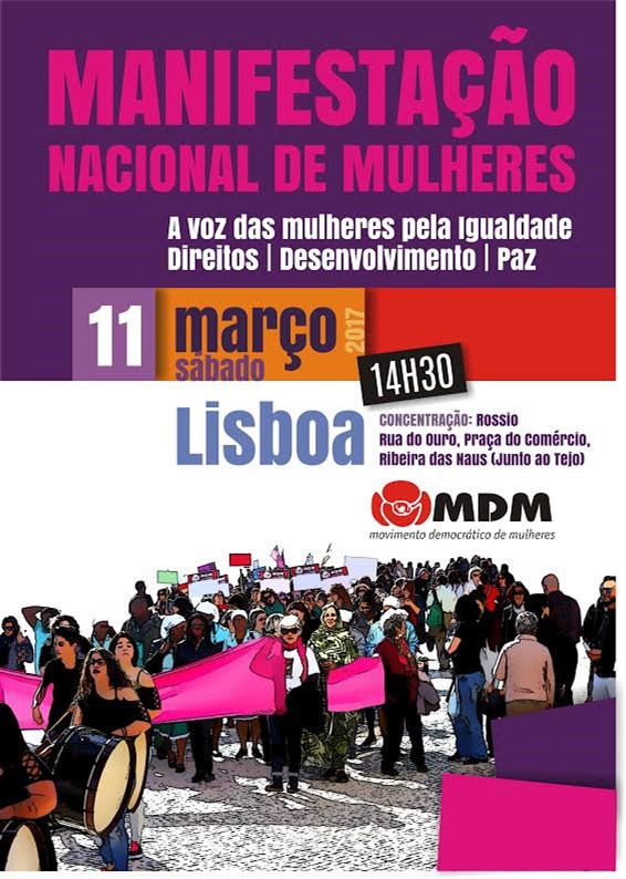No âmbito das comemorações do Dia Internacional da Mulher, que se assinala no próximo dia 8 de Março, o Movimento Democrático das Mulheres promove, no próximo Sábado, dia 11 de Março, em Lisboa, uma Manifestação Nacional de Mulheres, sob o lema “A voz das mulheres pela Igualdade – Direitos | Desenvolvimento | Paz”.
