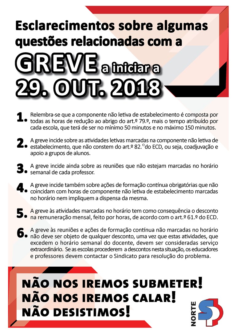 Esclarecimentos sobre a greve que inicia a 29 de outubro