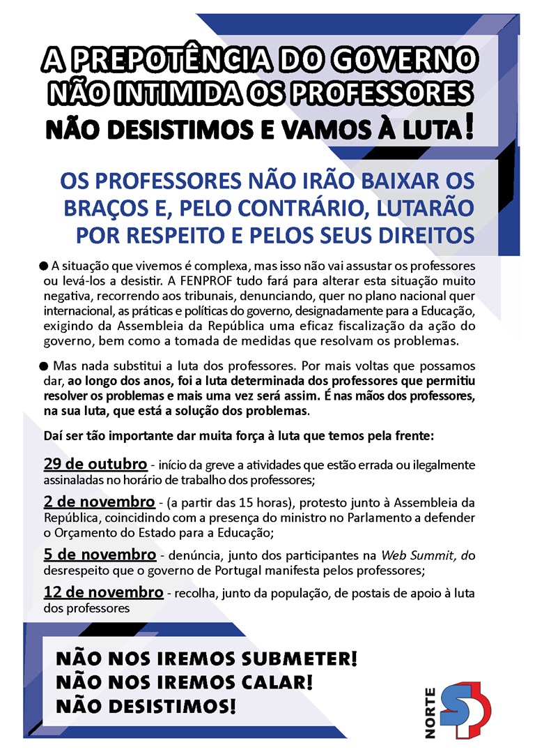 Esta greve prosseguirá enquanto não houver resposta positiva para as justas reivindicações dos professores tem convocatórias diárias, não tendo sido levantada qualquer questão relativamente à sua legitimidade.