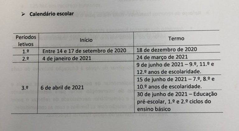 - a eventual necessidade de encerrar todas as escolas, caso Portugal viva uma nova vaga epidemiológica que obrigue a tal.