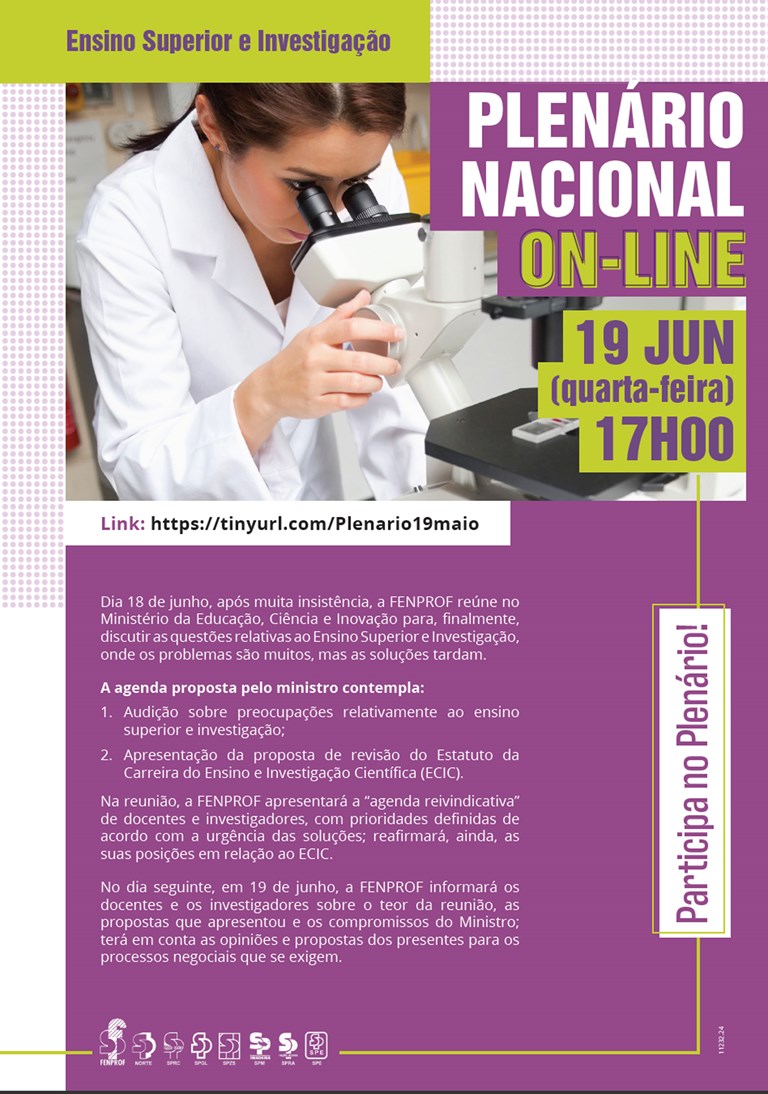 No dia seguinte à reunião com o Ministério da Educação, Ciência e Inovação para discutir as questões relativas ao Ensino Superior e Investigação (18/jun), a Fenprof promoveu um plenário online para informar os docentes e os investigadores sobre o teor da reunião, as propostas que apresentou e os compromissos do ministro da Educação.