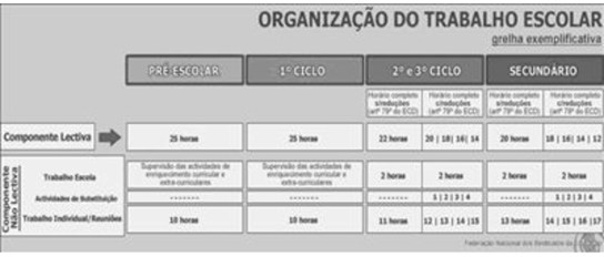 A FNE apresentou, após a assinatura do protocolo com o ME, numa tentativa de justificar o seu recuo, uma grelha exemplificativa da organização do trabalho escolar.