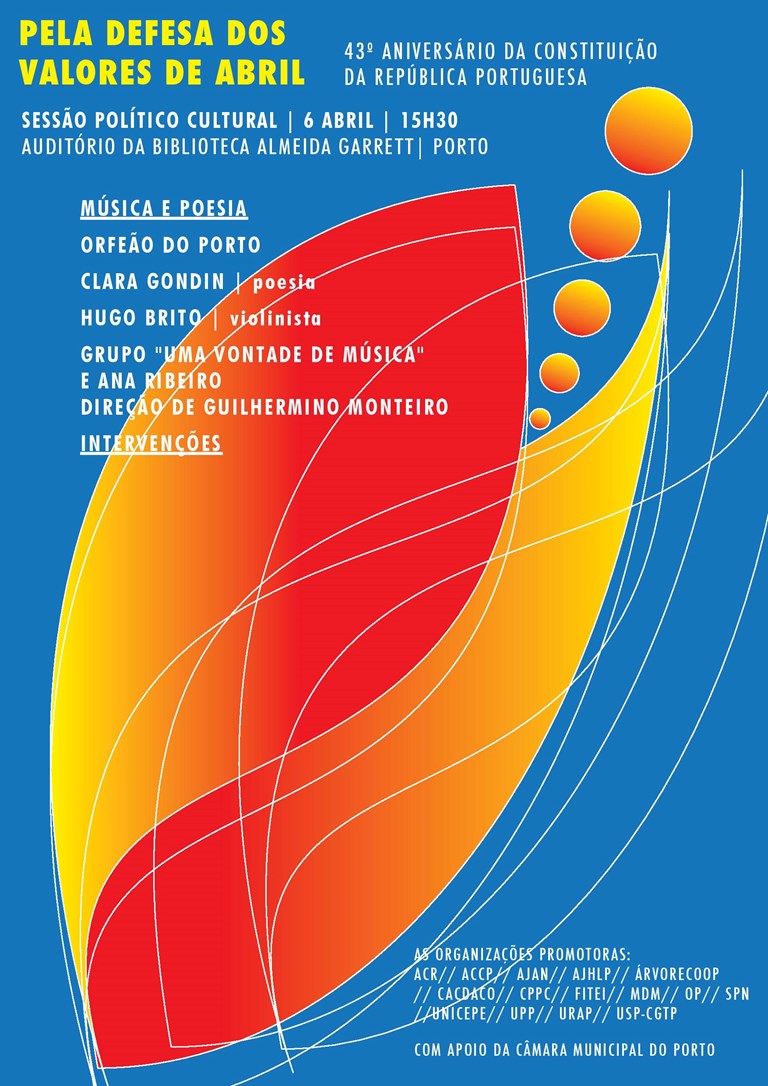 O Orfeão do Porto, a Clara Gondim, o Hugo Brito, a Ana Ribeiro, o Guilhermino Monteiro e a Vontade de Música... foram a componente cultural da iniciativa que assinalou o 43.º Aniversário da Constituição de Abril.