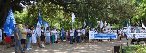 Após o plenário, os presentes desfilaram, em cordão humano, do Jardim da Estrela até às instalações do ME, onde entregaram a moção aprovada e o abaixo-assinado que reuniu mais de 17 mil assinaturas e onde estão resumidas as principais reivindicações dos docentes. Recorde-se que este abaixo-assinado já foi entregue à Assembleia da República, em forma de petição, e debatida na Comissão Parlamentar de Educação e Ciência (ver artigo).