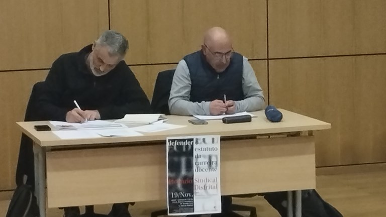 Realizou-se em 19/nov, no Auditório do CMI da EBS Dr. Serafim Leite (São João da Madeira), pelas 16h30, um plenário distrital de educadores e professores que contou com a presença de Francisco Gonçalves (coordenação do SPN e secretário-geral adjunto da Fenprof). A defesa do estatuto da carreira docente, que dentro em breve será objeto de negociação, esteve, naturalmente, no centro das atenções.