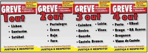 Perante a propotência e inflexibilidade revelada pelo Governo a Fenprof e outras 9 organizações sindicais convocaram, para os dias 2 a 4 de outubro, uma greve dos educadores e professores dos ensinos básico e secundário, a realizar por regiões.