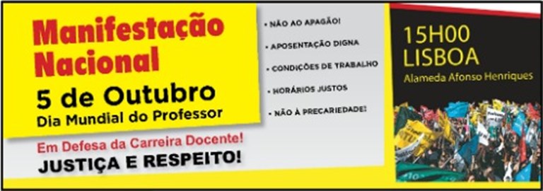 Esta semana de greve culmina com uma grande manifestação, no dia 5 de outubro (Dia Mundial do Professor), em Lisboa.