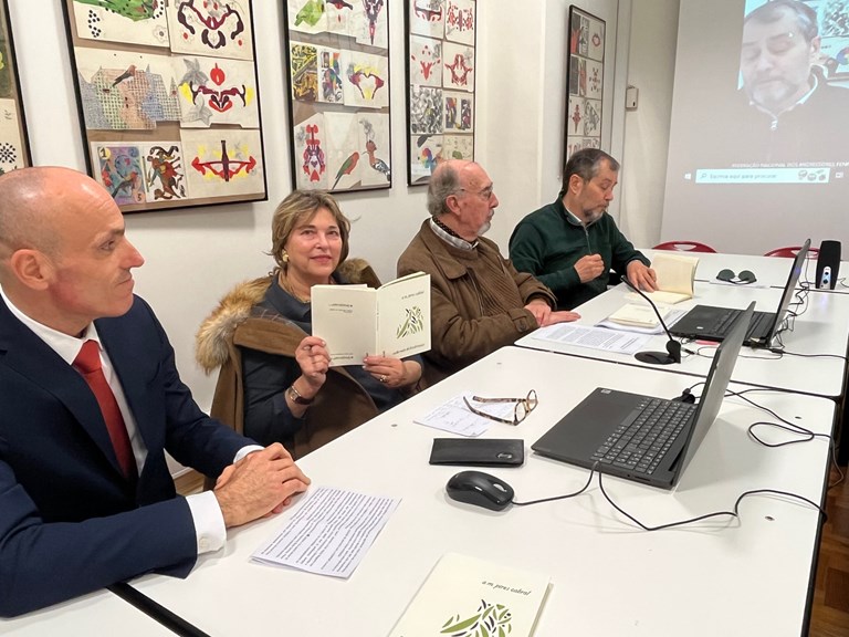 “caderneta de lembranças” de a. m. pires cabral foi a obra premiada do Concurso Literário da Fenprof/Sabseg de 2022. A sessão foi realizada com o autor à distância, por dificuldades do próprio em deslocar-se a Lisboa.