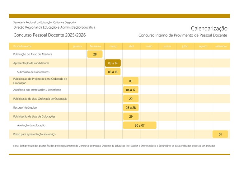 As candidaturas aos concursos interno de afetação e de oferta de emprego vão iniciar-se no dia 19 de maio e decorrerão até 23 de maio (18h). A submissão de documentos pode ocorrer até 27 de maio (18h). A publicação dos respetivos projetos de lista ordenada de graduação está prevista para 20 de junho.