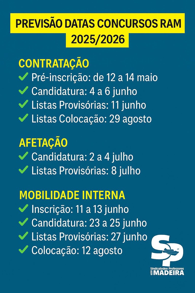 Decorre entre 11 e 13 de junho, o prazo de inscrição ao Concurso de Mobilidade Interna da Região Autónoma da Madeira (RAM), necessária para os docentes que não têm vínculo a escolas da RAM e pretendem exercer funções docentes na Região de forma transitória, pelo que este concurso não é obrigatório. Foram também publicadas, com data de 11 de junho, as listas ordenadas provisórias de candidatos admitidos e excluídos no Concurso de Contratação Inicial 2025/2026 da RAM. O prazo para reclamação é de 5 dias úteis. Após esse período, a lista torna-se definitiva, com as alterações que resultarem das reclamações procedentes ou desistências.