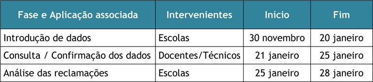 Seguir-se-á, até 28 de janeiro, o prazo estabelecido para a análise das reclamações, por parte das escolas.