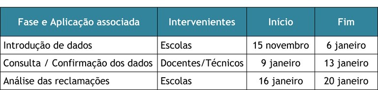 Seguir-se-á, até 20 de janeiro, o prazo estabelecido para a análise das reclamações, por parte das escolas.