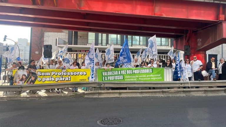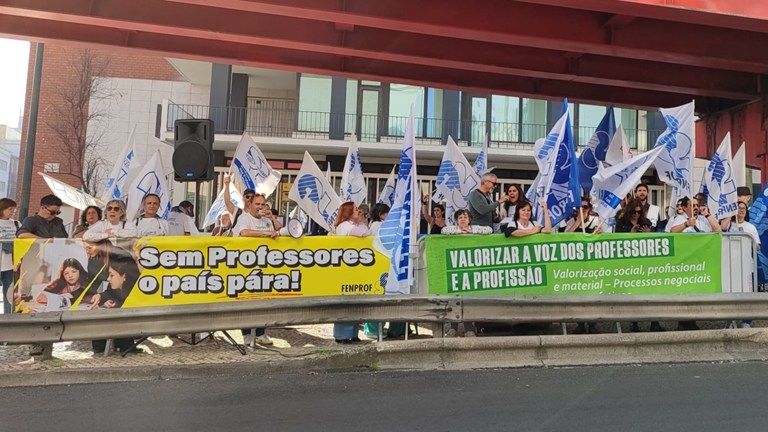 Num protesto formal pelo modo como o processo de revisão do Eestatuto da Carreira Docente (ECD) está a ser conduzido, designadamente pelos atrasos, falta de esclarecimentos e desconsideração pelas propostas construídas e apresentadas pela Fenprof, enquanto decorria a reunião, algumas dezenas de quadros e dirigentes sindicais concentraram-se à porta do Ministério da Educação, Cultura e Inovação (MECI), a quem os dois secretários-gerais manifestaram as suas principais preocupações.