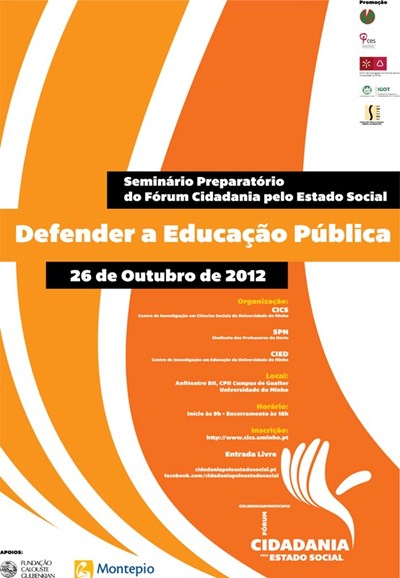A Comissão Organizadora do Seminário “Defender a Educação Pública”, vem, por este meio, convidá-l@ a estar presente no referido evento, que se realizará no dia 26 de Outubro de 2012, pelas 9h00 no Anfiteatro BII, CPII da Universidade do Minho.