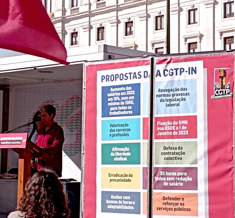 Mais uma jornada de luta contra o Orçamento de Estado para 2023 que não responde aos problemas do pais e dos trabalhadores. Só é vencido quem desiste de lutar. A luta continua nas empresas, nas escolas e na rua. Nesta ação de luta, a CGTP-IN alertou para a necessidade de respostas aos problemas dos trabalhadores e do país, e a importância da luta pelo aumento dos salários e pensões como forma de repor e melhorar o poder de compra. No final da iniciativa foi aprovada a resolução: “Mais salário! Melhores pensões! | Contra o aumento do custo de vida e o ataque aos direitos | Investir nos serviços públicos”.