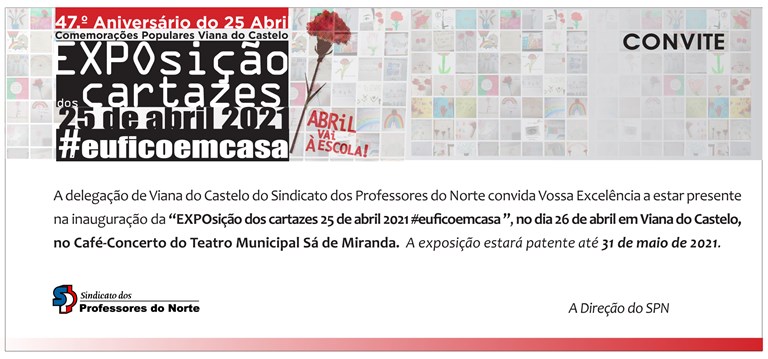 Integrada nas comemorações populares do 25 de Abril de Viana do Castelo/2021, esta exposição engloba duas iniciativas, promovidas pelo SPN/Viana do Castelo. A primeira, realizada em abril/2020 – “#euficoemcasa” –, constou da produção, por parte dos alunos, de cartazes alusivos ao 25 de Abril; a segunda iniciativa, proposta para o presente ano, versou a produção de cravos, em materiais recicláveis. Ambas as iniciativas inserem-se na atividade “O 25 de Abril vai à Escola”, com que, ano após ano, o SPN/Viana do Castelo celebra o Dia da Liberdade. É, pois, o conjunto de cartazes produzidos no ano passado, que por força da pandemia ainda não tinham sido mostrados à cidade, e de cravos feitos pelos alunos, e que abrilhantam o espaço, aquilo que o visitante poderá admirar.