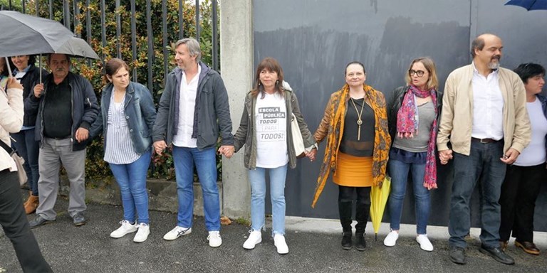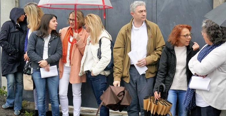 Os educadores e professores do Agrupamento de Escolas do Cerco do Porto, reunidos junto ao portão da Escola Básica e Secundária do Cerco do Porto, sede do Agrupamento: